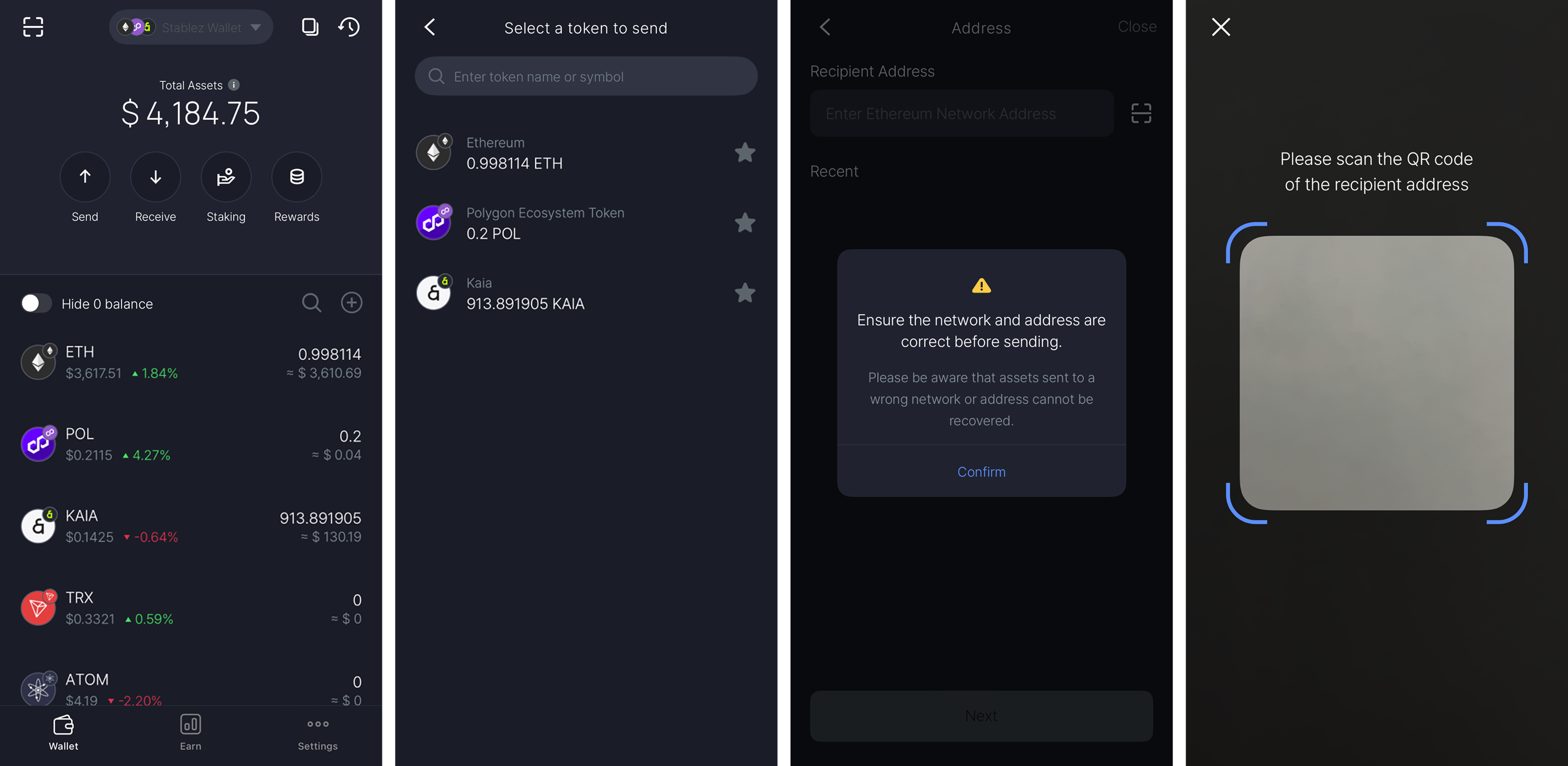2. Select the network of the token you want to send. Ensure the network of the token before sending.