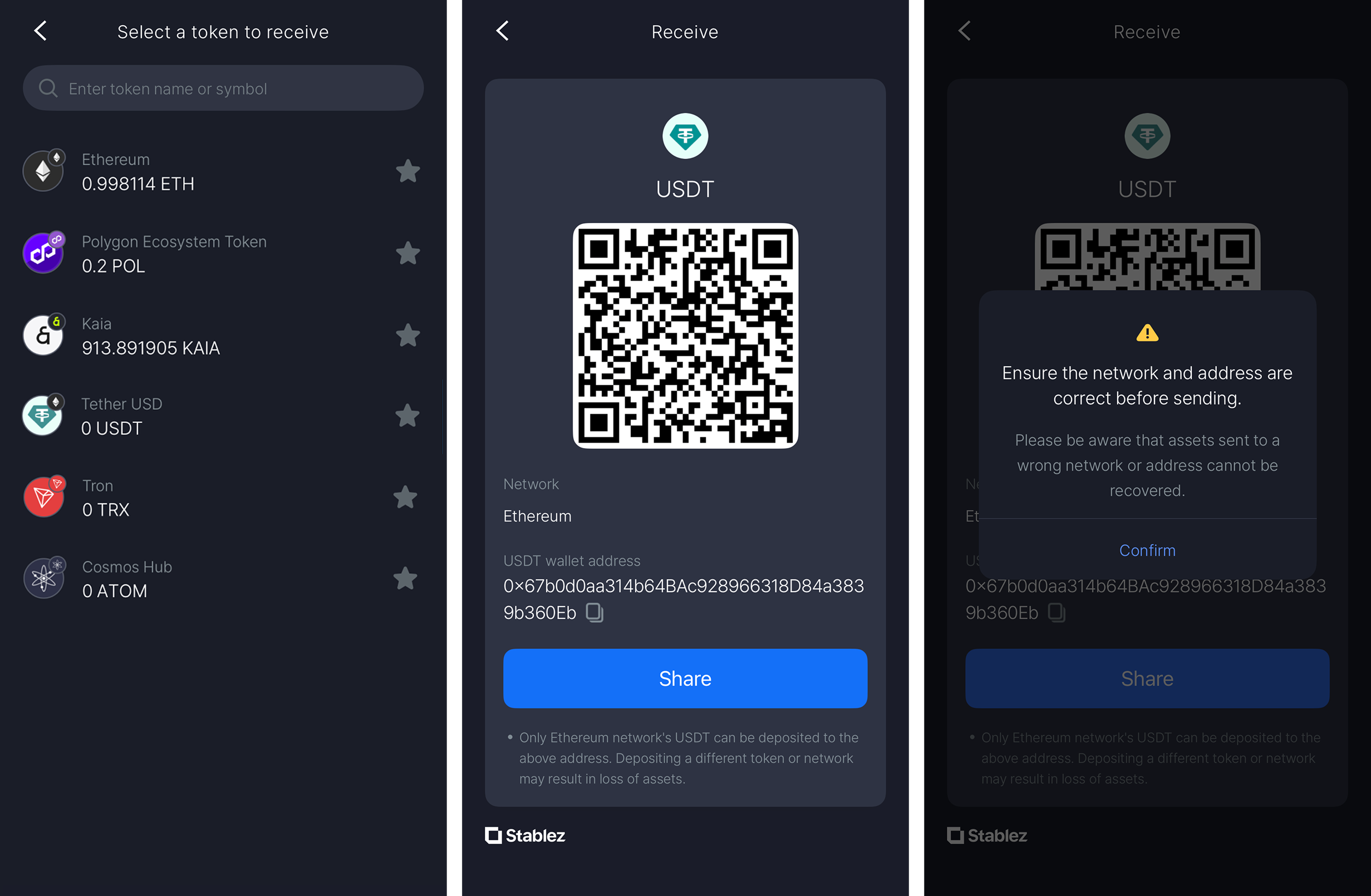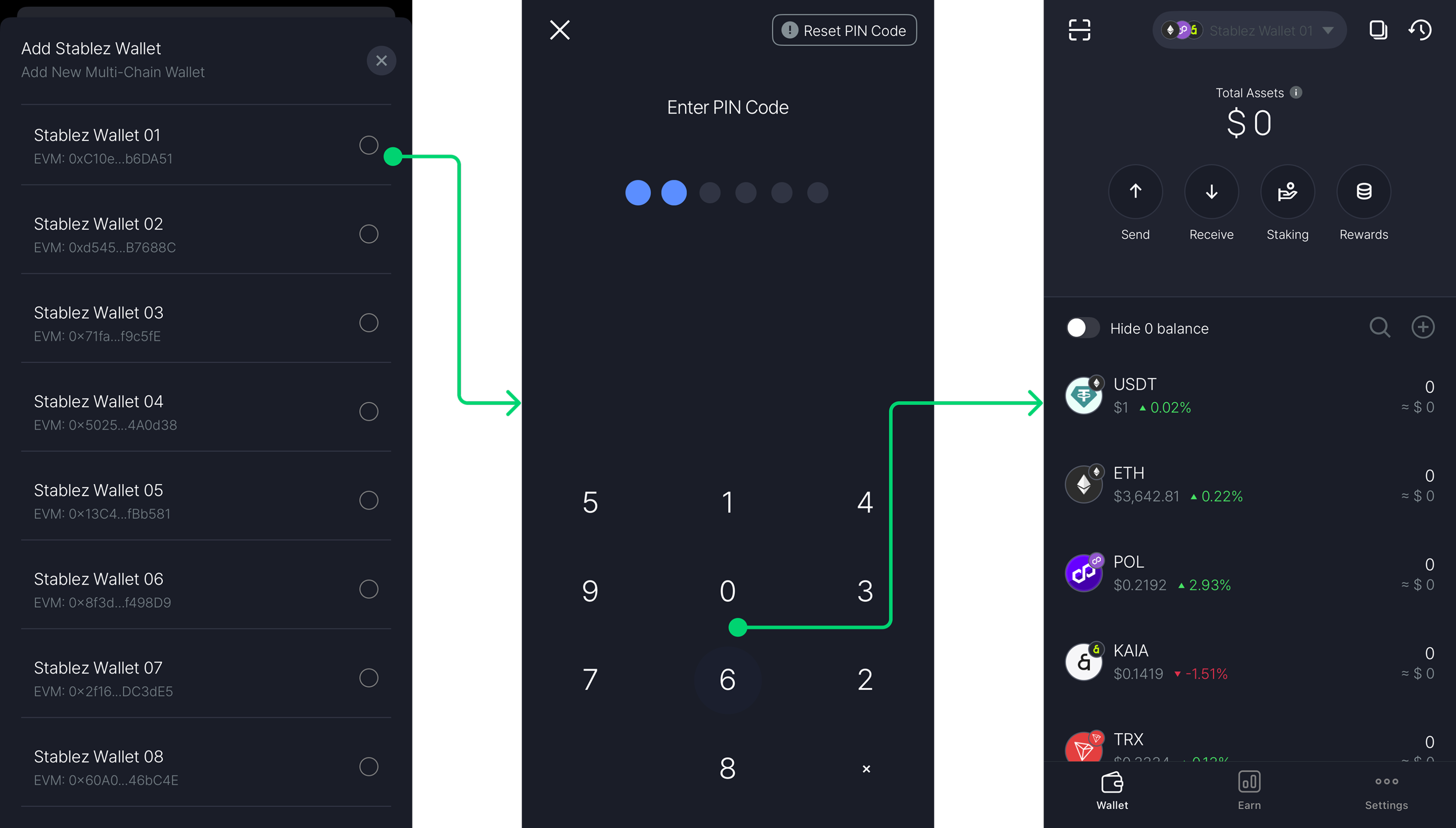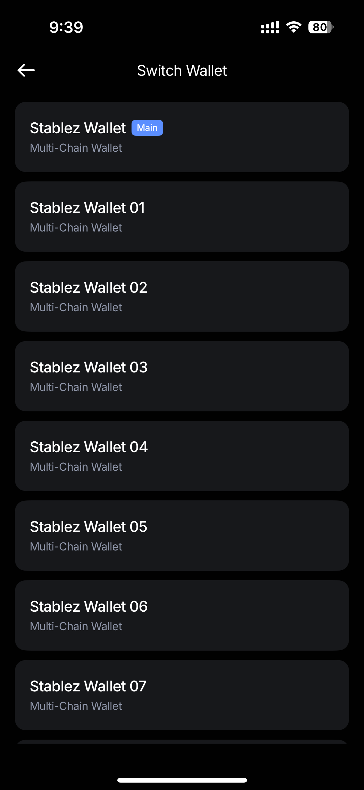 Once you create a Stablez wallet, you can generate up to 20 different multichain wallet addresses under the same UID. Each wallet is independent, with unique addresses and private keys. Manage your assets more efficiently with multiple multi-chain addresses, all within a single application.