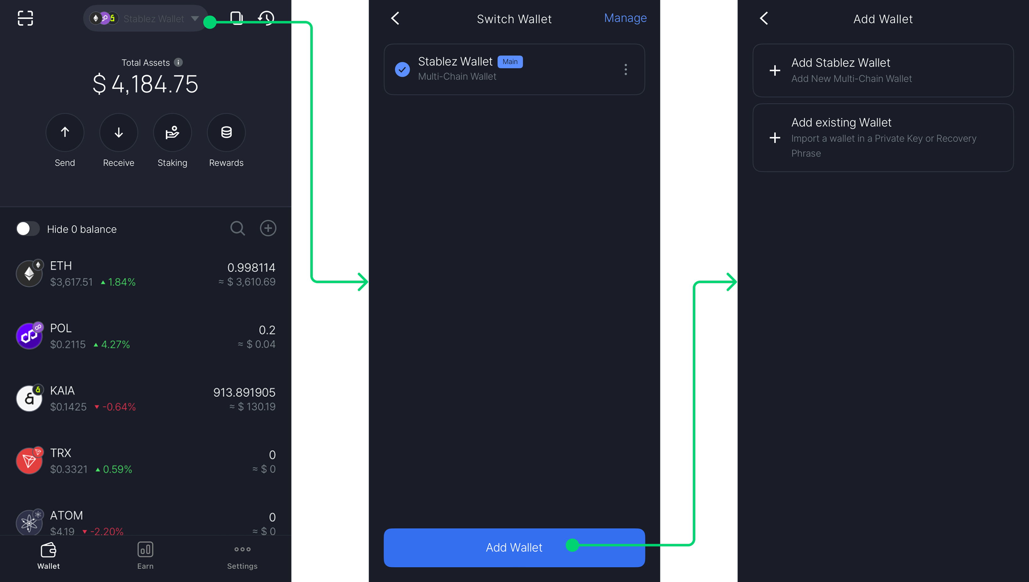 2. Select **\[Add Wallet]** > **\[Add Stablez Wallet]** button